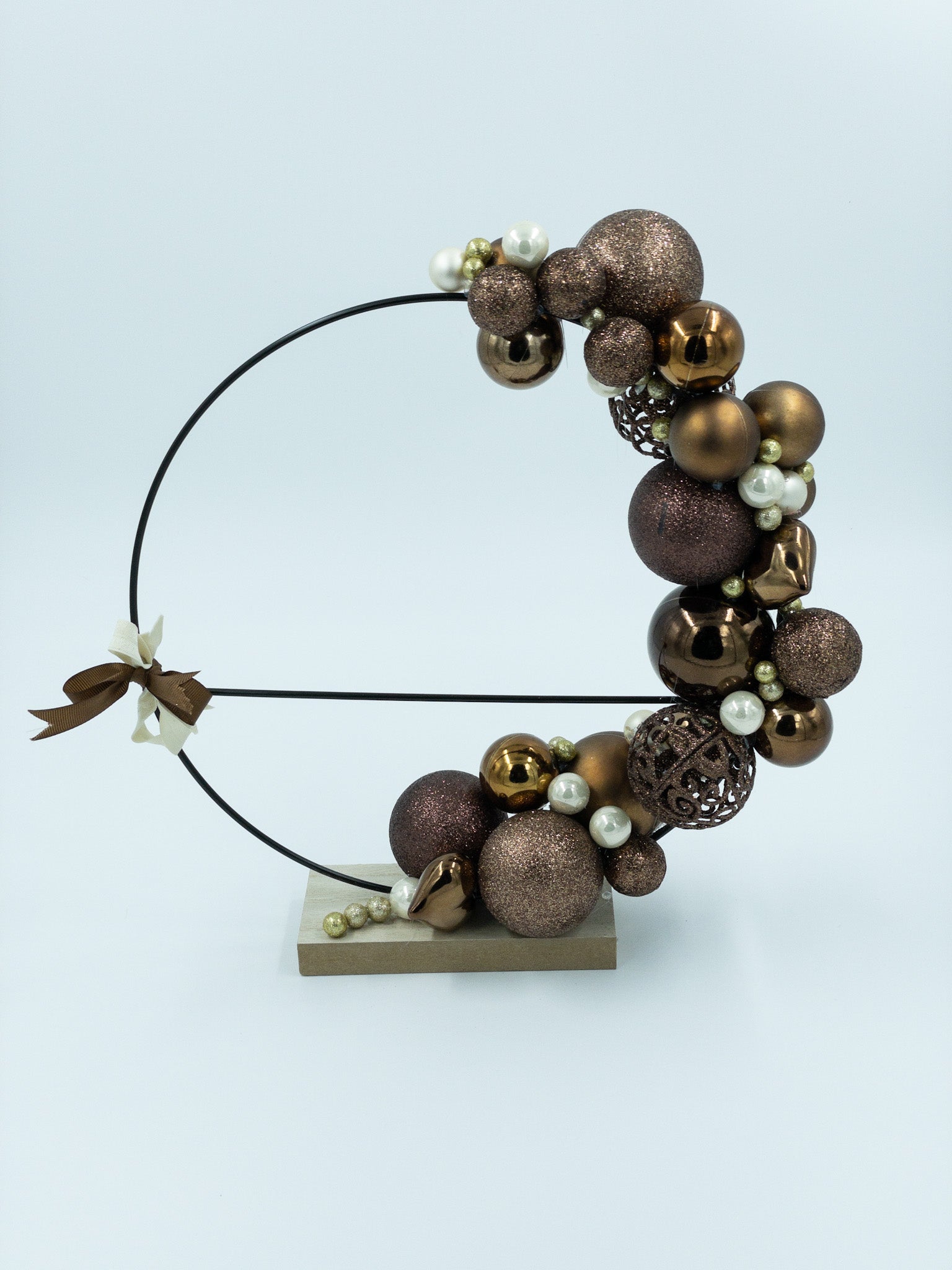 Der Kugelkranz Bronze ist ein einzigartiges Kunstwerk, das von Hand gefertigt wurde. Er besteht aus Kugeln in den Farben Bronze, Braun und Glitter Braun, Weiß. Jedes einzelne Stück wurde sorgfältig von Hand dekoriert und zusammengesetzt.