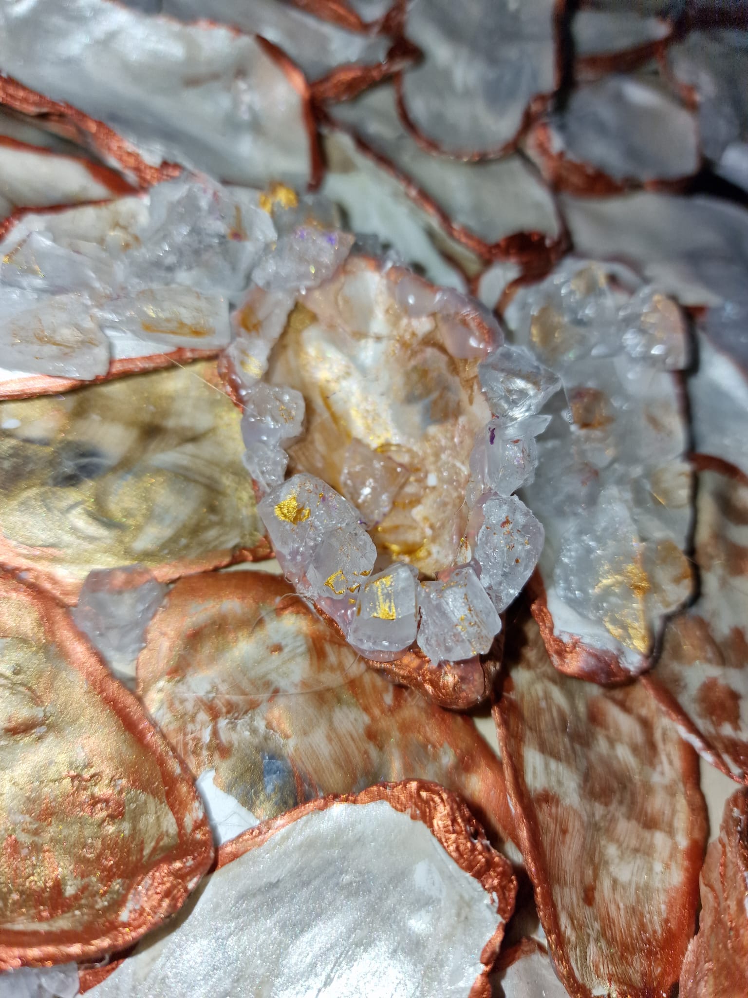Die Austern Muschel Wanddekoration ist ein vielseitiges und elegantes Accessoire, das Deinem Zuhause eine persönliche Note verleiht. Wir verwenden Materialien wie Holz, Austern Muschel aus verschiedenen Ländern, Servietten, eine hochwertige Acryl Farbe um wunderschöne Effekte und einen schönen Glänzenden Effekt zu erhalten um eine breite Palette von Stilen und Texturen anzubieten.