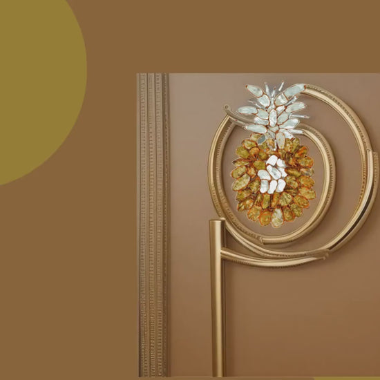 Die Ananas wurde noch mit ein paar hübschen Steinen von Bergkristallen verschönert. Die Wanddekoration ist ein zeitloses und eleganten Accessoire, das jedem Raum eine persönliche Note verleiht. Verschönere Deine Wände mit diesem wunderschönen Produkt!