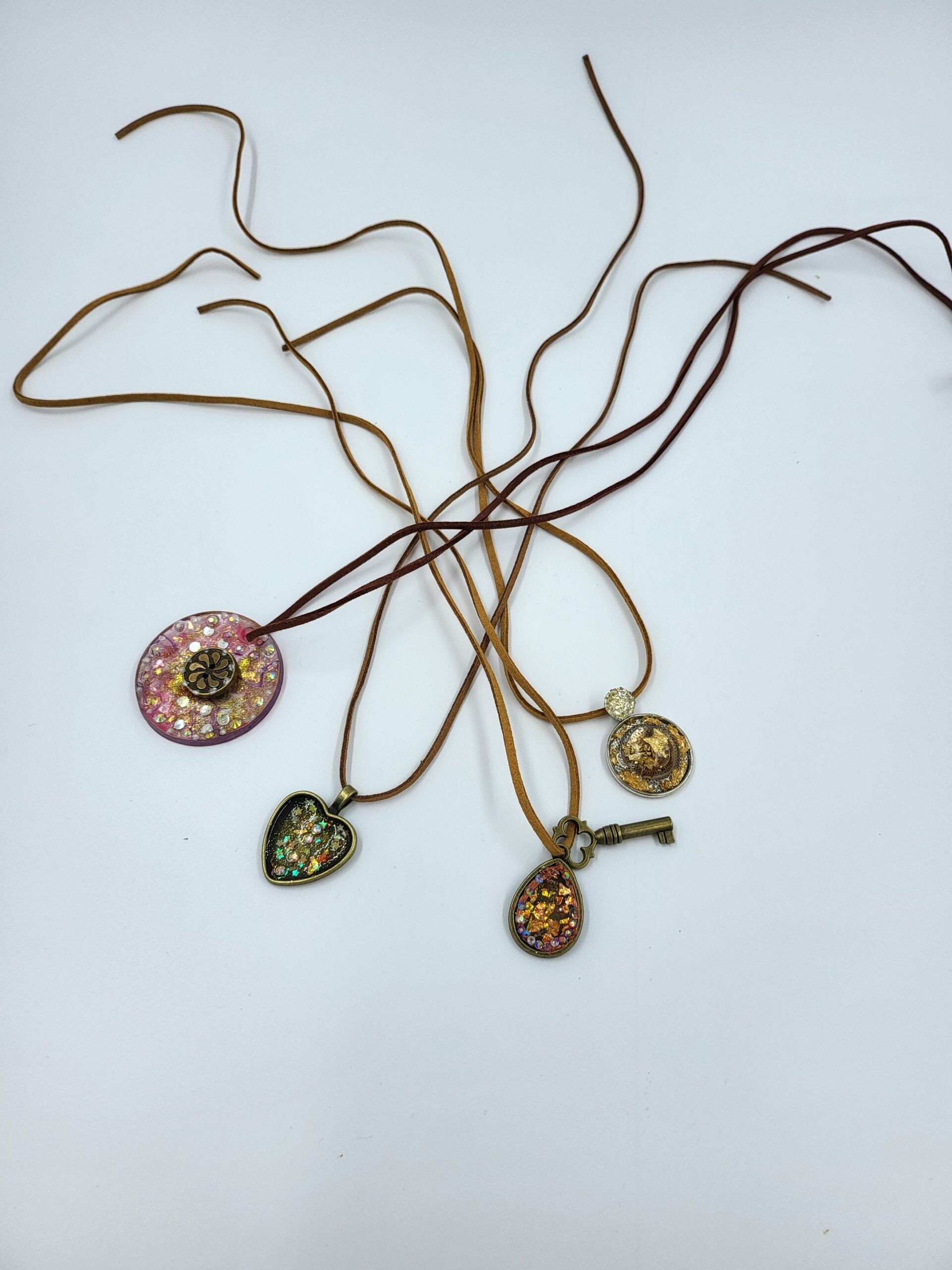 Alles in feinster Handarbeit gemacht.Zum Teil Cabochon Anhänger und Anhänger nur aus Resin gemacht.Natürlich darf der Schlüssel zum Herzen nicht fehlen.Alle Anhänger aus Verschiedene Farben und Lederband.