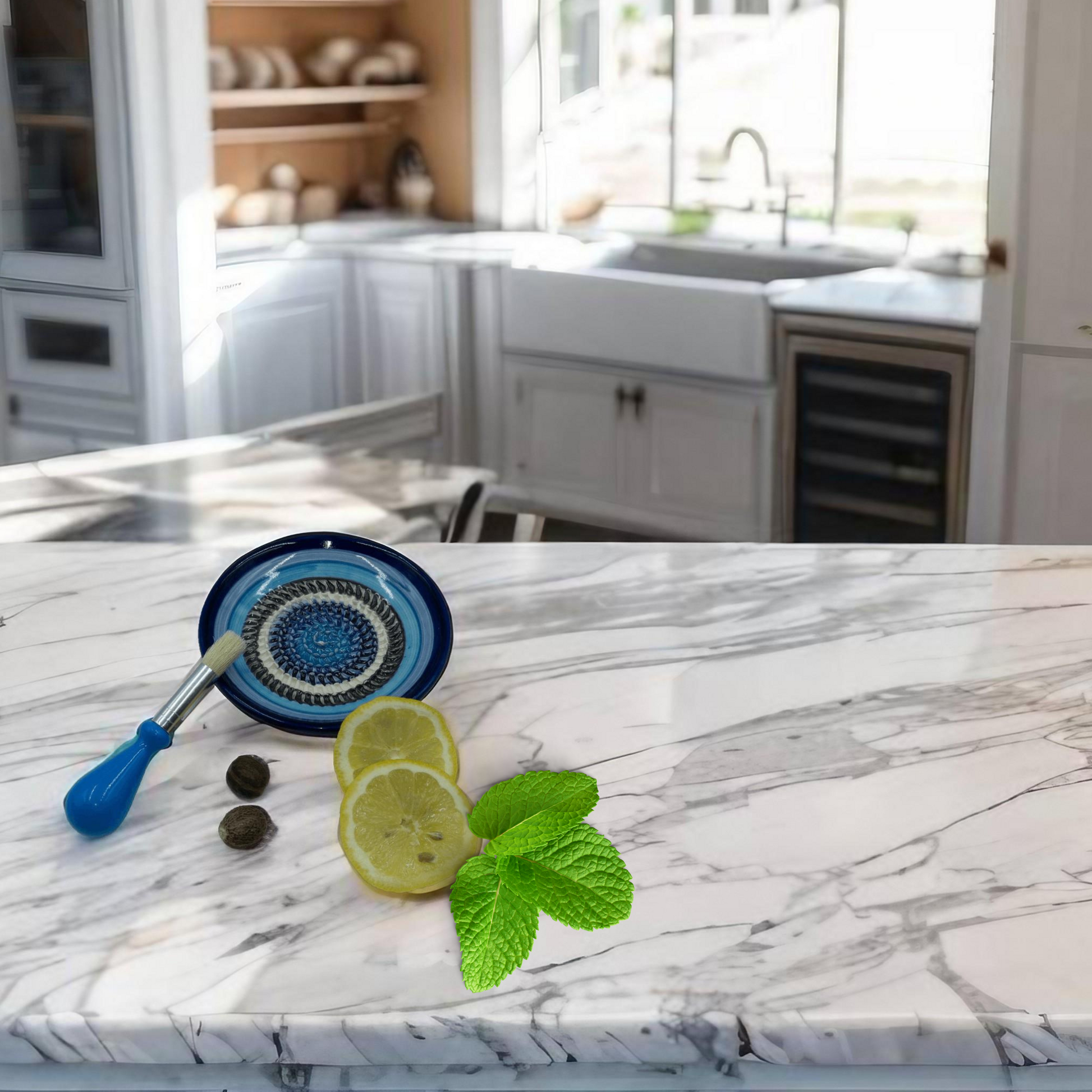Der Keramik Reibeteller Oceano Azul ist ein einzigartiges Produkt, das Ihnen das Reiben von Ingwer, Kurkuma, Zwiebel, Tomaten, Knoblauch, trockenes Brot und Semmeln, Parmesan, Muskatnuss, Äpfel, Zitrone und Orangen, Schokolade erleichtert.