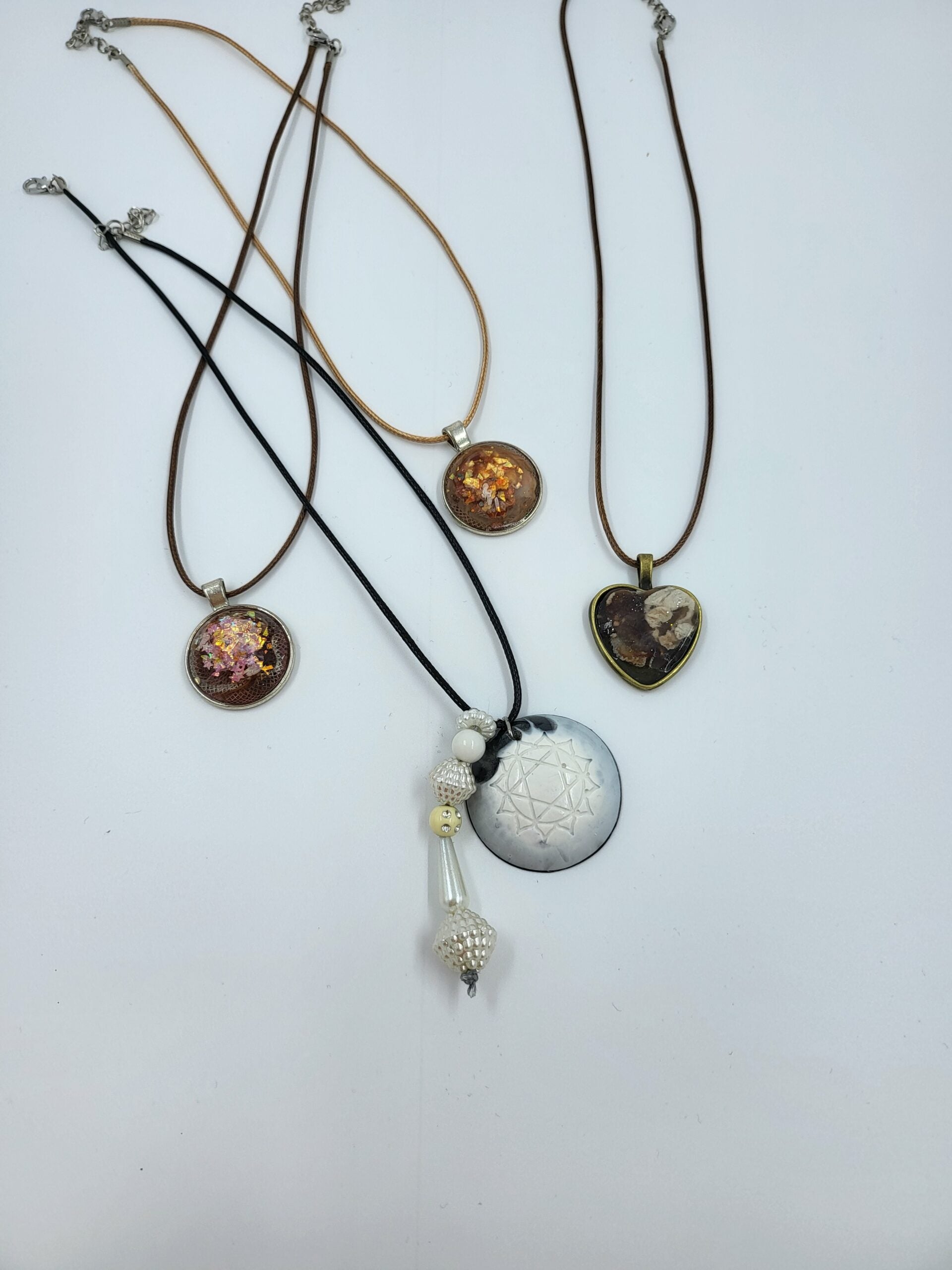 Der Anhänger ist alles aus Resin gemacht. Verschiedene Muster und Farben auch mit Glasperlen erhältlich.Die Kette ist aus feinen Leder und Bulk Verschluss. Sehr elegant.
