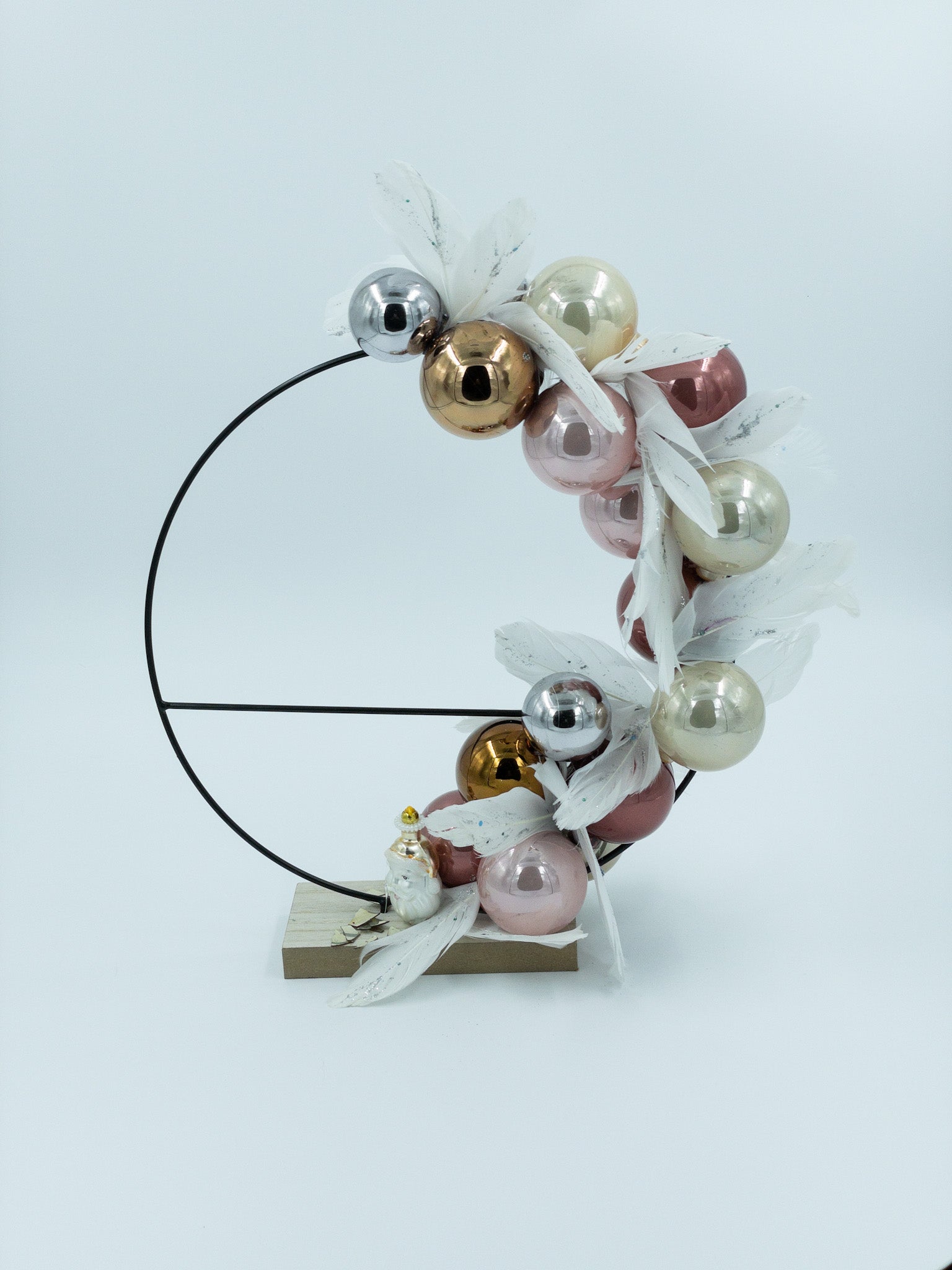 Der Kugelkranz Glamour ist ein einzigartiges Accessoire, das jedem Outfit einen Hauch von Glamour verleiht. Er wurde liebevoll von Hand mit Kugeln bestückt und dekoriert. Die Kugeln haben die Farben Hell und Dunkel Rosa, Silber, Weiß und Gold. Jedes einzelne Stück wurde von Hand gemacht und gefertigt.