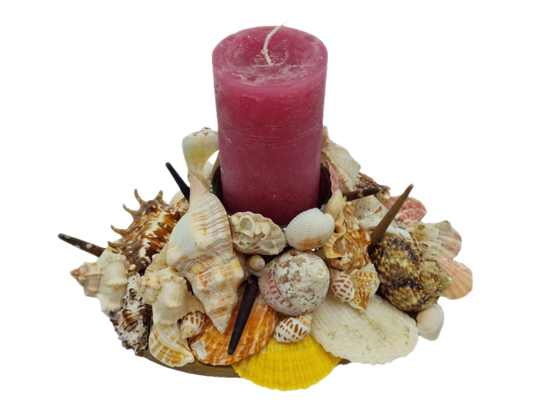 Das schöne und liebevolle gestaltete Muschelmix Dekor hat eine Rote Stumpfkerze die in der Mitte platziert wurde und immer wieder erneuert werden kann. Bringe ein Stück und Feeling des Meeres 🐚🐚 zu Dir nach Hause mit unserer Muschelmix-Kerze.
