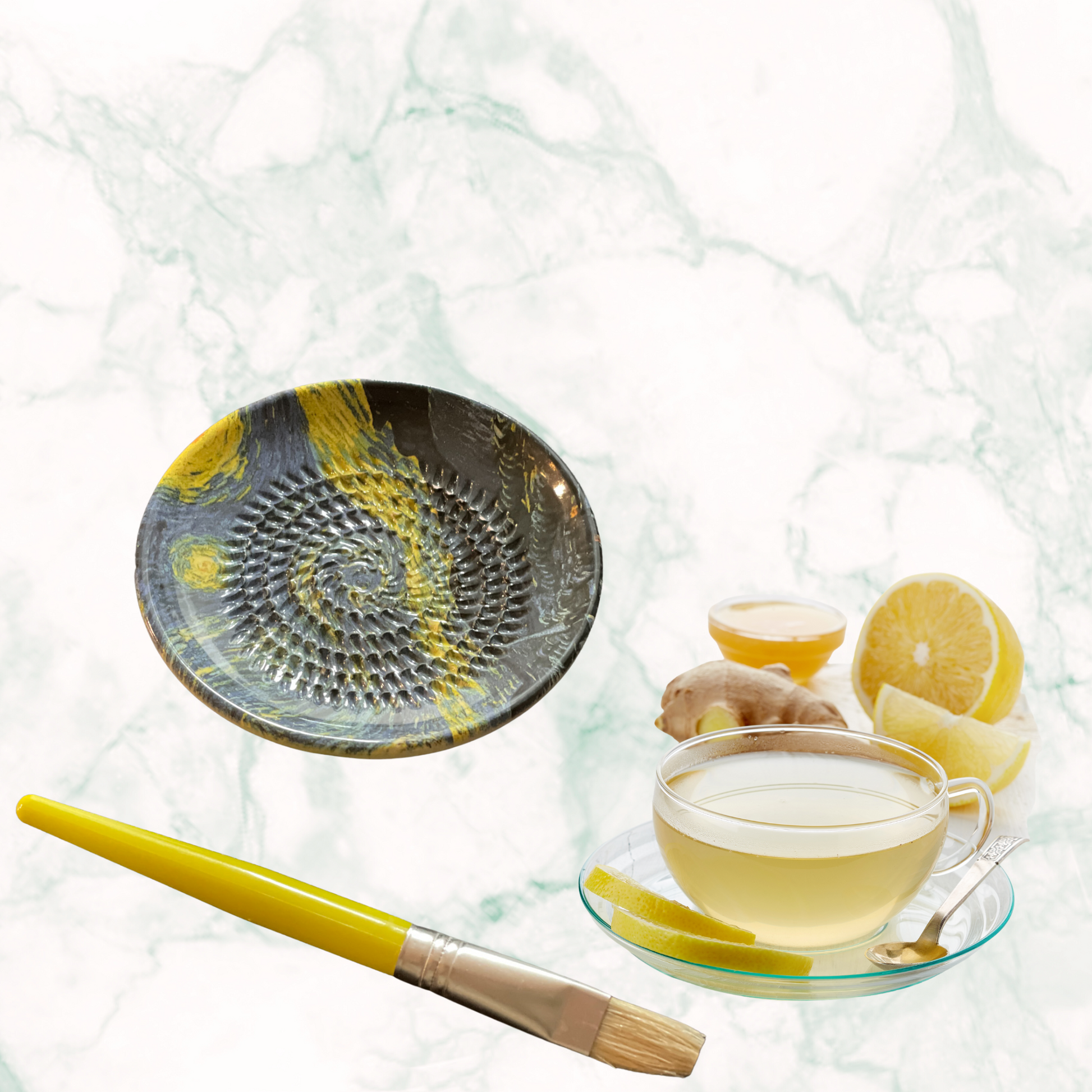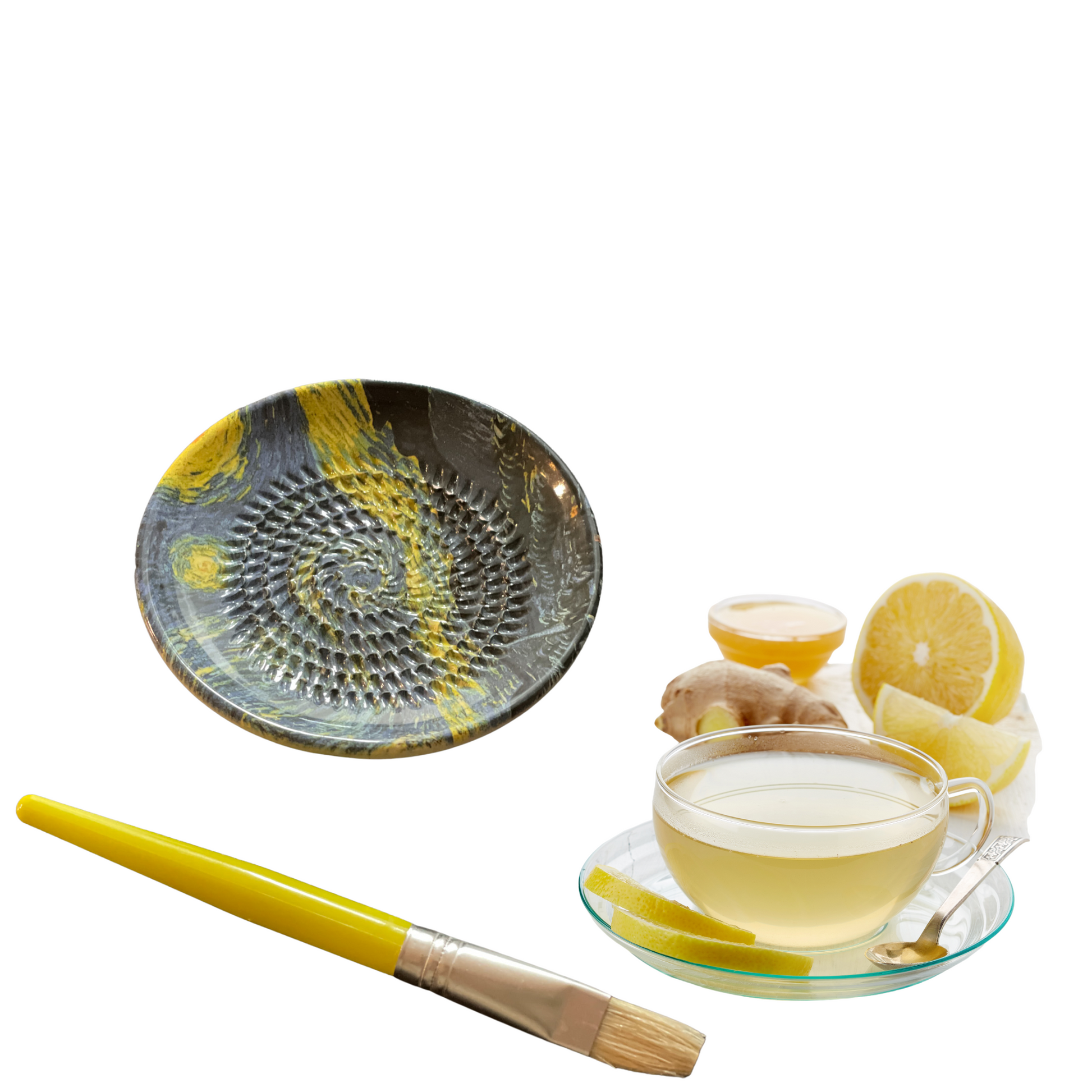 Der Keramik Reibeteller El mundo Loco van Gogh ist ein einzigartiges Produkt, das Ihnen das Reiben von Ingwer, Kurkuma, Zwiebel, Tomaten, Knoblauch, trockenes Brot und Semmeln, Parmesan, Muskatnuss, Äpfel, Zitrone und Orangen, Schokolade erleichtert.
