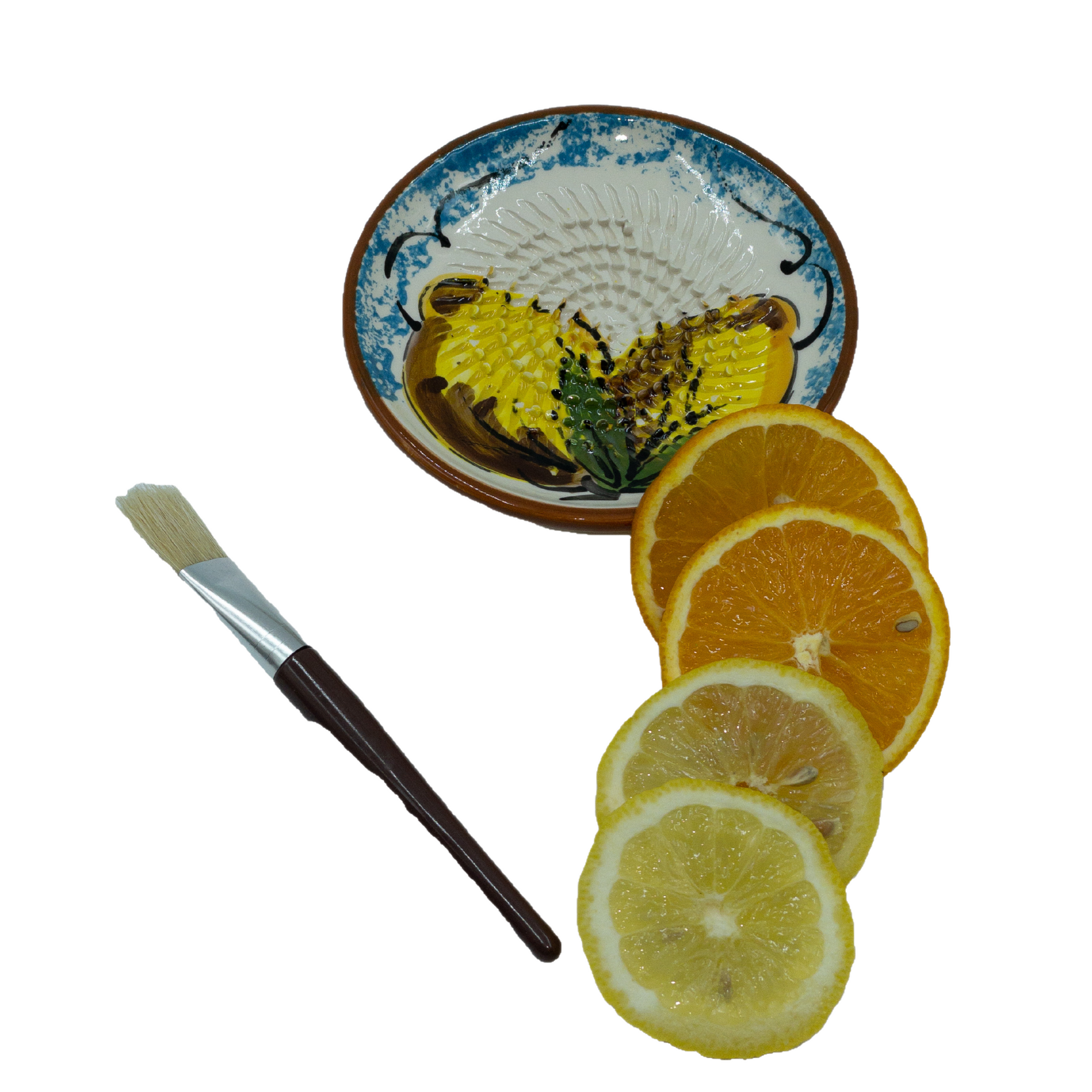 Der Reibeteller hat einen Durchmesser von 12cm und ist für das Reinigen im Geschirrspüler geeignet. Er wird in Spanien von Hand hergestellt und bemalt. Zu jedem Reibeteller erhalten Sie einen Pinsel, um das geriebene Produkt zu entnehmen.