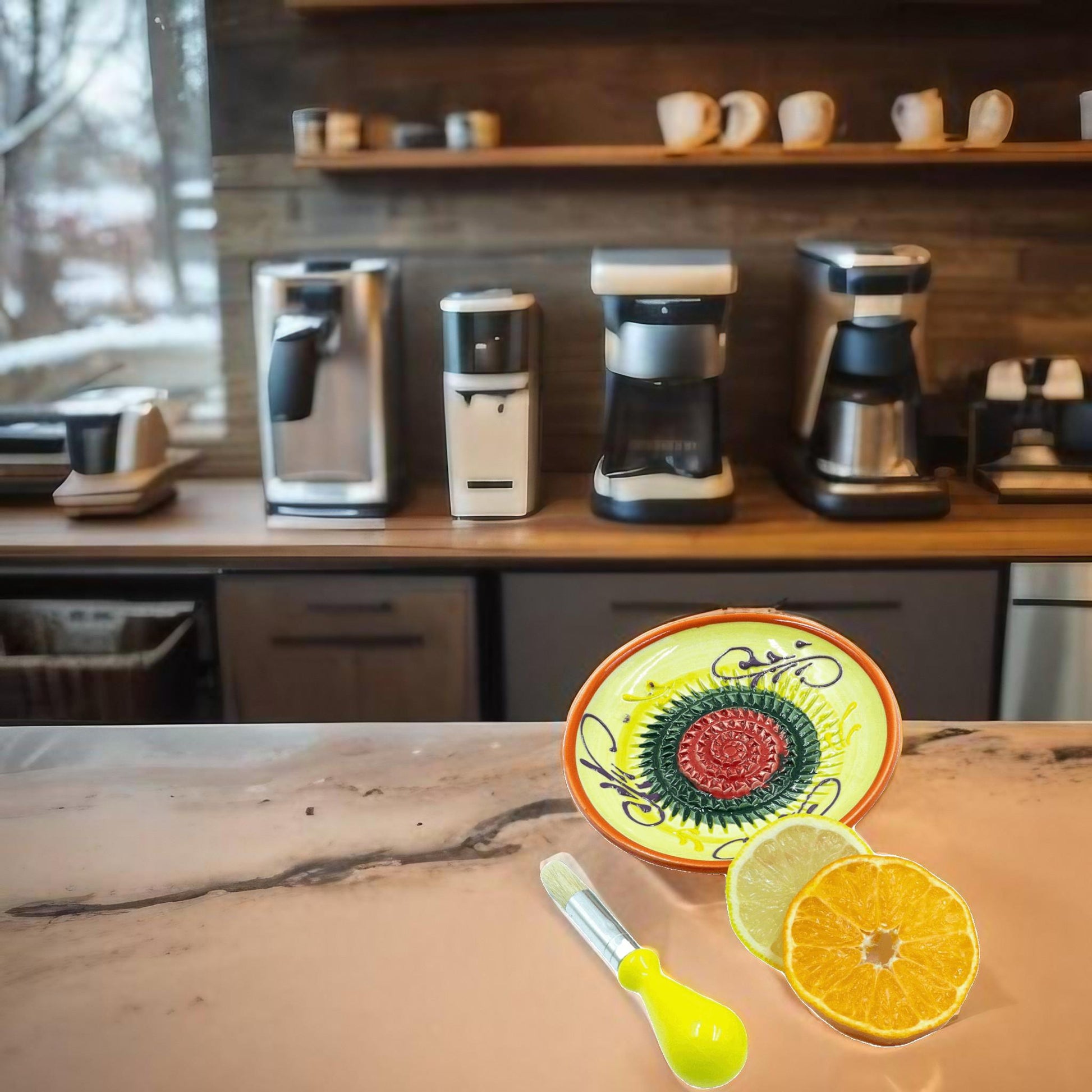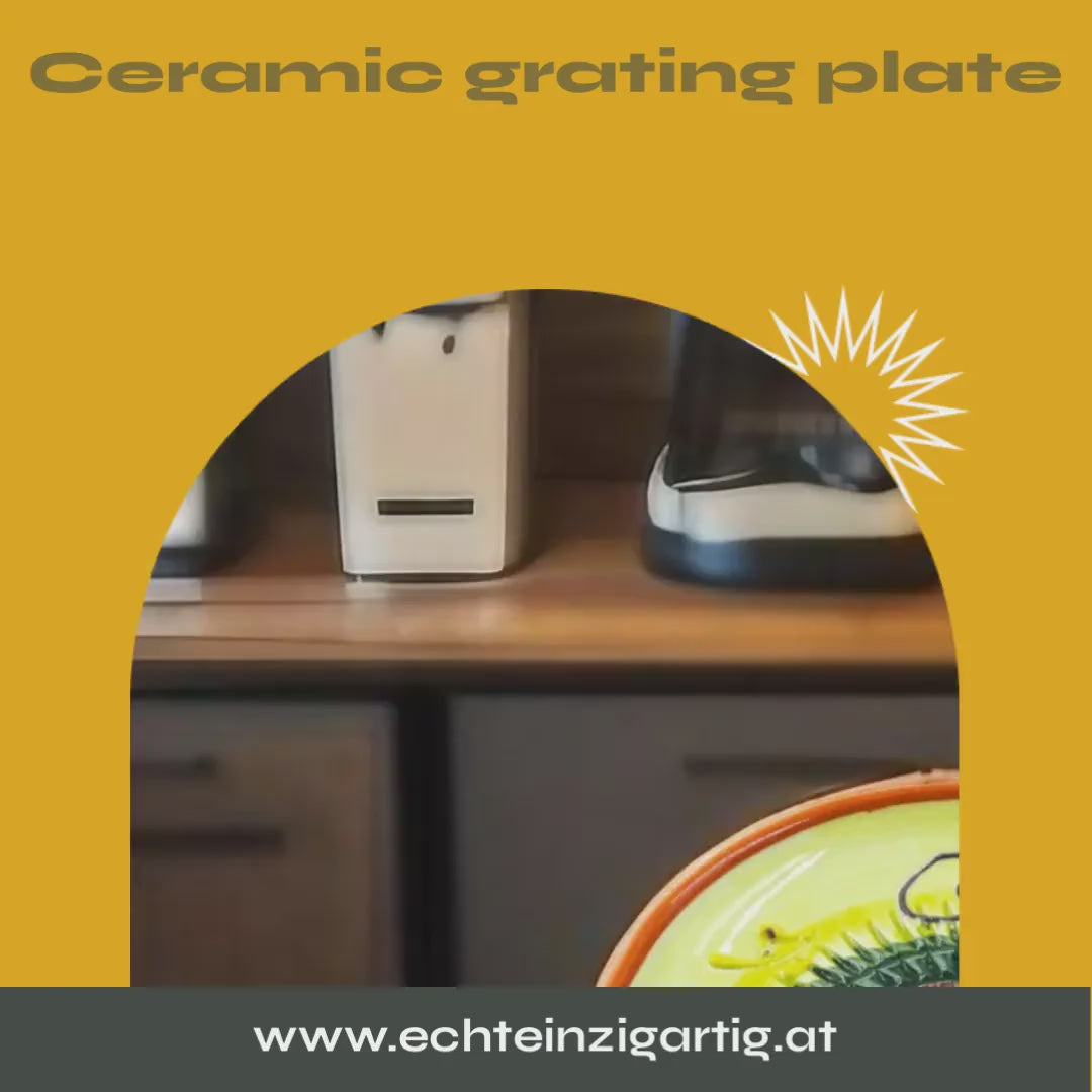 Der Keramik Reibeteller Lucia ist ein praktisches Küchenwerkzeug, das das Reiben von Ingwer, Kurkuma, Zwiebel, Tomaten, Knoblauch, trockenes Brot und Semmeln, Parmesan, Muskatnuss, Äpfel, Zitrone und Orangen, Schokolade erleichtert.