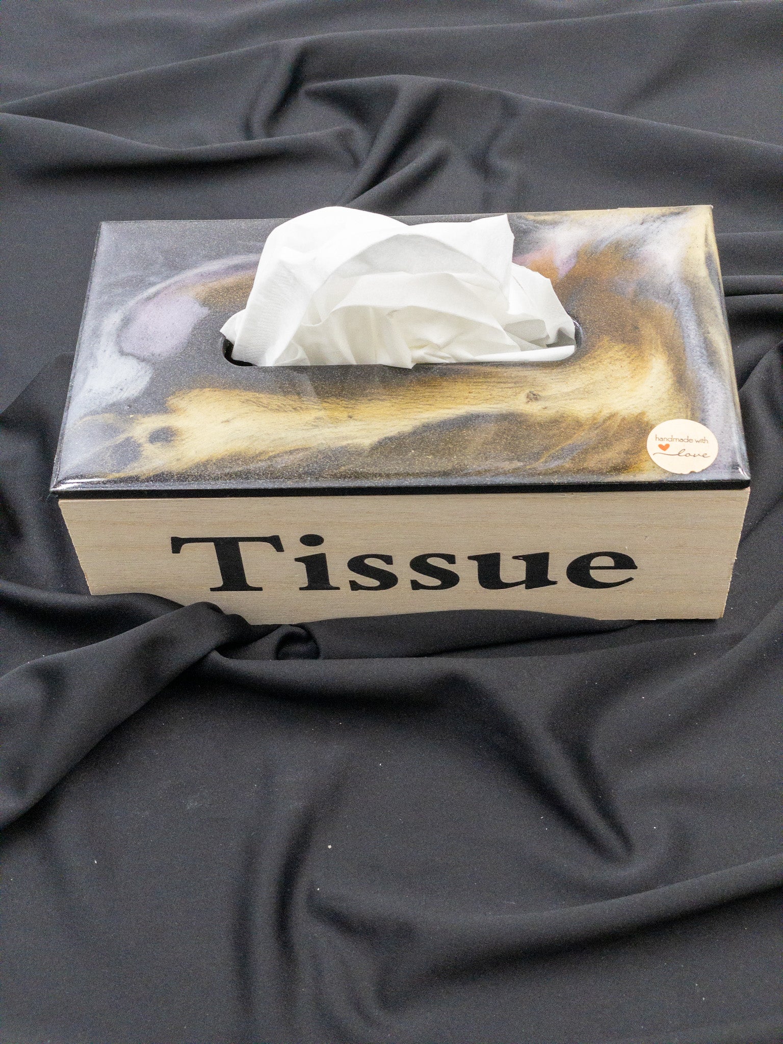 Tissue Box aus Holz mit mehreren Schichten Resin veredelt.